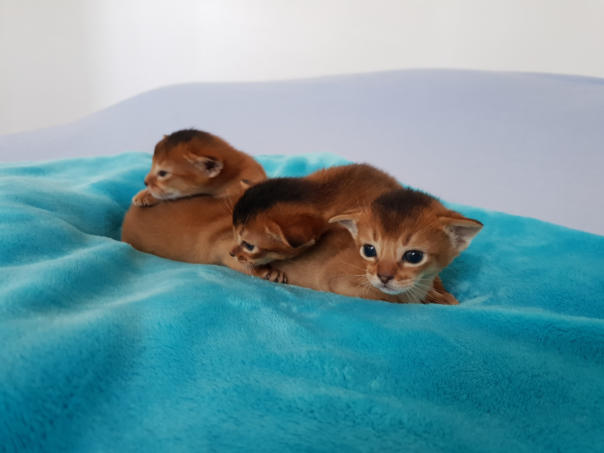 Our Abyssinians are part of our family, of our home that’s why they are sociable, confident and affectionate, very at ease in them cushion.
